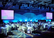 We provide everything from large-scale events with multiple projectors or stage lighting to LED backlights for speakers and smaller presentations.